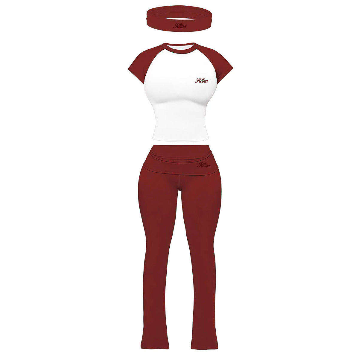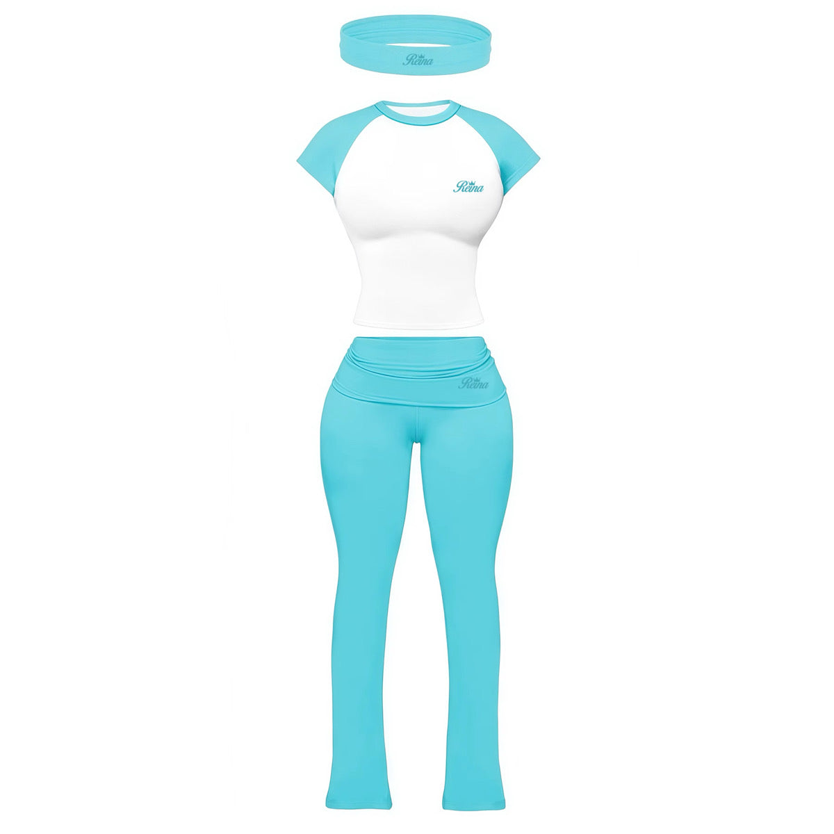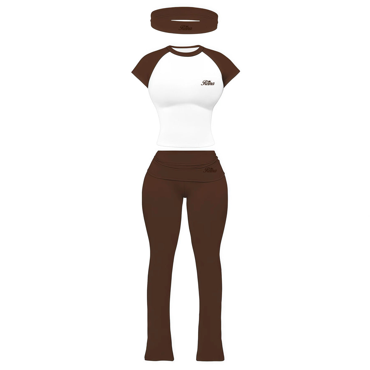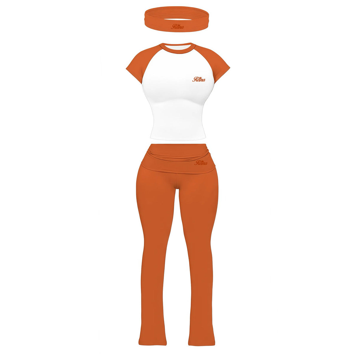 Sets are true to size. All sets come with matching headband. Fold over waist pants with flare bottom. 90% Cotton, 10%spandex.