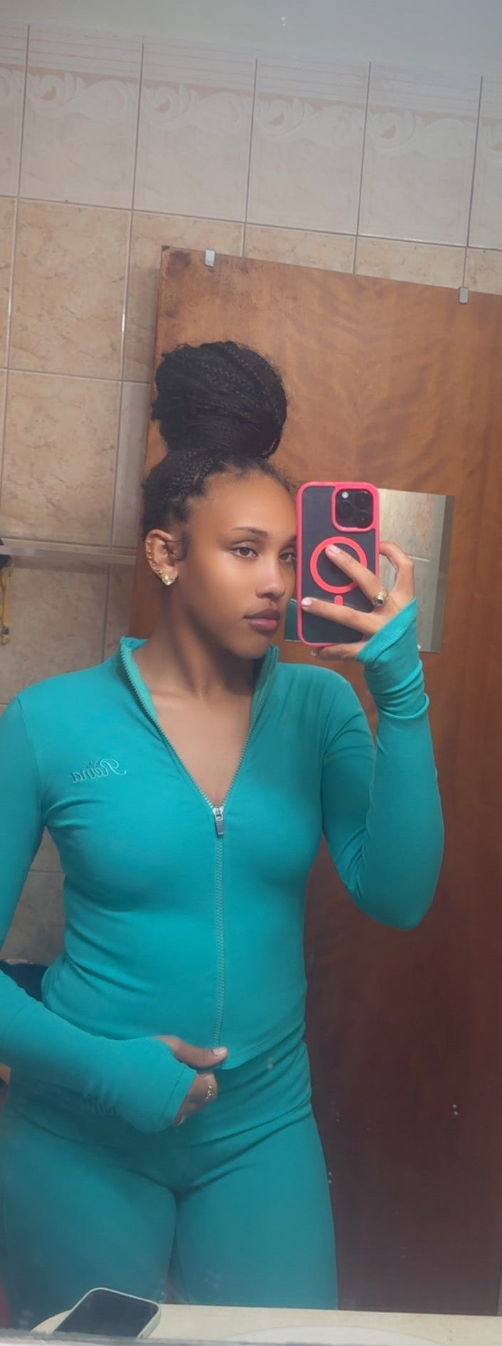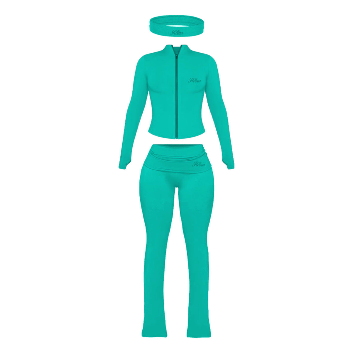 Sets are true to size. This sets hugs your body. Each set comes with matching headband. 90% Cotton 10% spandex. Thumb holes. Fold over waist pants with flared bottom.